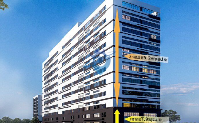 中山城区·临国道准现楼产业园 城区稀缺7.9米层高产品,电梯直达隔层 临105国道,8分钟上广珠西线高速 50年产权,2成首付 临主路一字楼,采光通风好 [图片] ——政府重点产业规划—— 中山科学城已是南区一个响当当的名片,是中山打造科技创新园的主阵地,特别是光子科学中心、先进低温研究院两大科学装置布局南区,为南区新一轮发展翻开了崭新的篇章。 项目位于中山科学城核心区 [图片] [图片] ——最便捷交通—— 1、3分钟上广珠西线高速南区收费站 2、接驳中阳高速跨越深中通道,50分钟内直达深圳 3、紧邻105国道,南北20-30分钟直达广州珠海 [图片] ——爆款产品—— 户型面积2100-2500㎡ 首层7.9米,实心地 2 楼停车库 3、8楼7.9米,承重1.2-1.5吨 4-7楼5.5米,承重1吨 每层5台3吨,2台5吨货梯,2台客梯 [图片] 一号楼二号楼户型图: [图片]