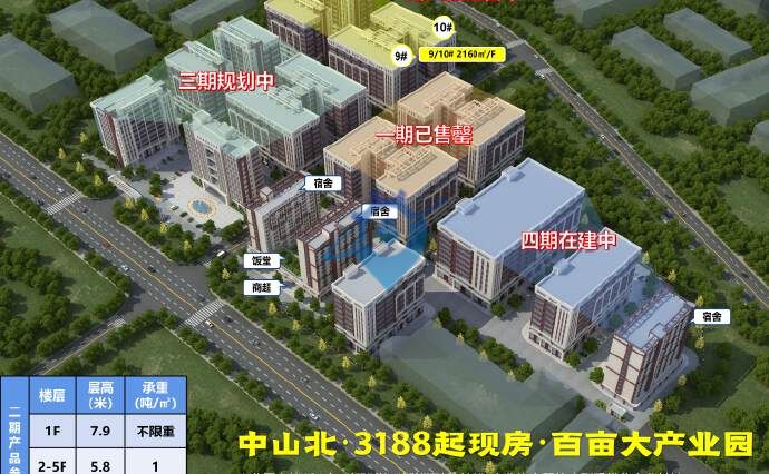中山北中心阜沙·现楼百亩园区 独家代理项目 一层一户,独立国有证 2成超低首付门槛,即买即收楼 园区配套:精装宿舍、饭堂、沿街商业(便利店、中型商超满足生活所需) 产品面积:1465-2160㎡,一层一户 层高:首层 7.9米,2-5层 5.8米,6-9层 4.6米; 承重:首层实心地无上限,2-5层1T,6-9层 0.8T; ——产品优势—— (1)周边产业链完备 (2)红本独立产权,3188元起带精装 (3)占地百亩,32万大型园区,园区自带宿舍、食堂等配套 (4)现楼即买即入驻 (5)交通方便,5-10 分钟上高速,政府重点扶持发展区