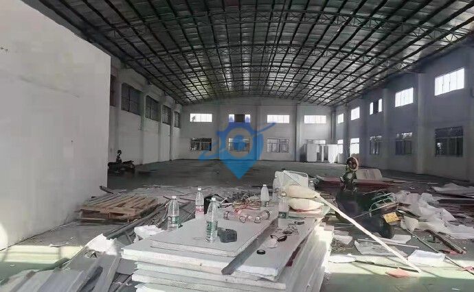 港口镇单一层砖墙到顶星棚厂房1500方,滴水7米,现成环评,行业不限,配电按需。大路边空地大可进拖挂,
